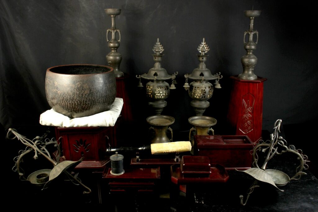 仏教美術 仏具一式 花立 灯籠 おりん 輪灯 唐木台 14点 を買取いたしました。弊社では希少な骨董品も取り扱っておりますので、骨董品のことならお任せください。ご不要の物がでてきましたら、是非弊社に査定をさせてください。2026年3月12日 広島での骨董美術品買取ならサンセリテアートにお任せください。コンフィアンス株式会社