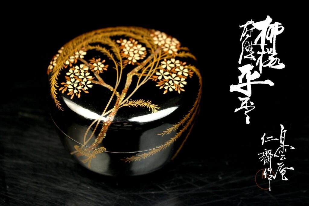 岡山県無形文化財 白雲庵 難波 仁斎 作 柳桜蒔絵 棗 共箱を買取いたしました。