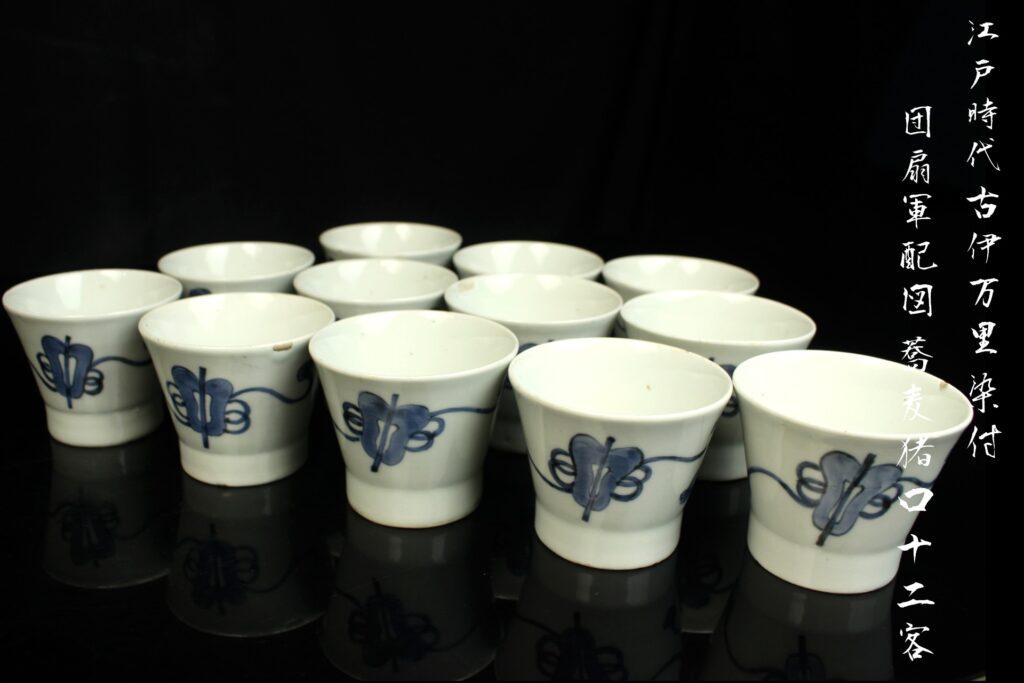 江戸時代 古伊万里 染付 団扇軍配図 蕎麦猪口 十二客を買取いたしました。