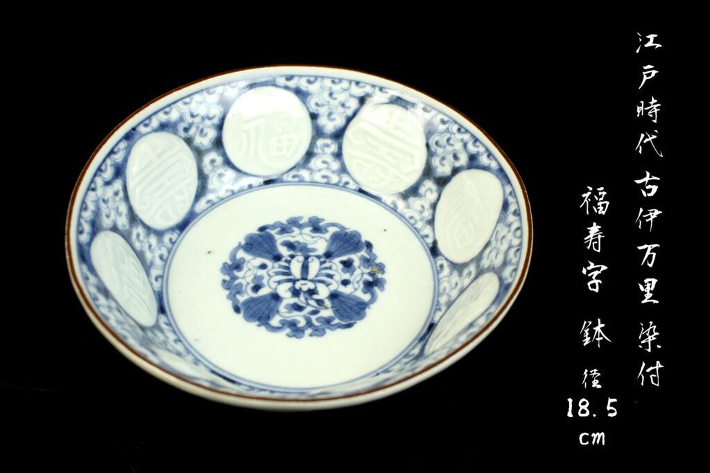 江戸時代 古伊万里 染付 福寿字 径18.5㎝ 蔵出品を買取いたしました。
